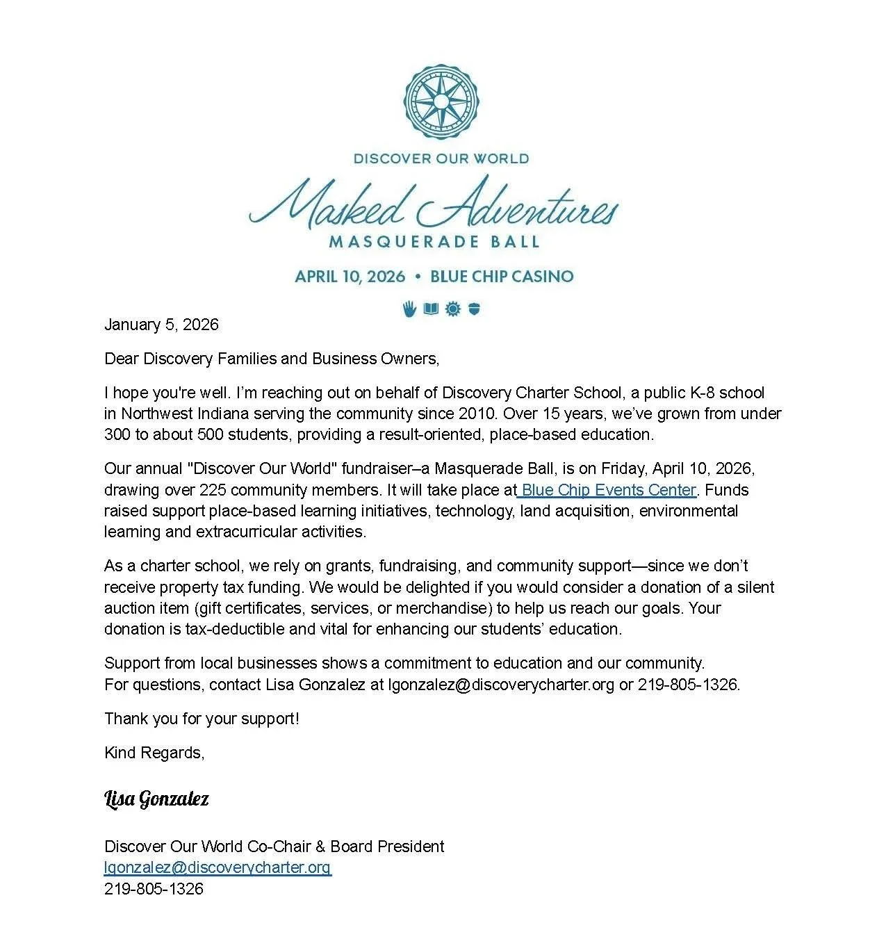 How do I volunteer? Email lgonzalez@discoverycharter.org or call or text Lisa at 219-805-1326